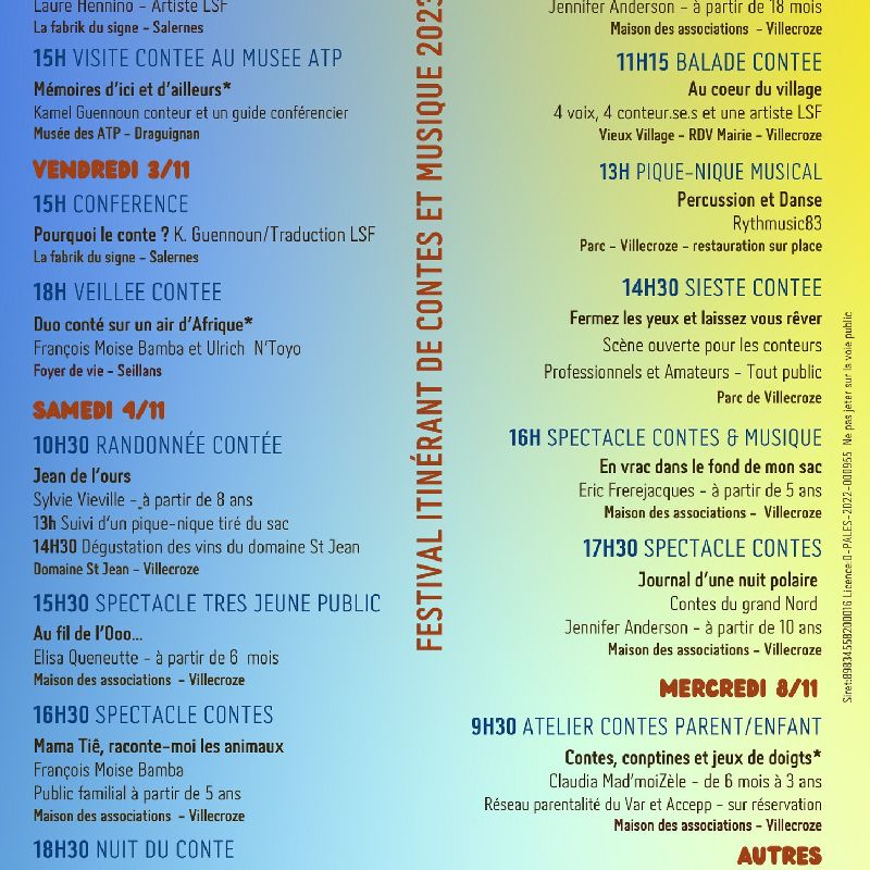 Festival itinérant de contes et de musique : des rendez-vous pour se rassembler, se rencontrer autour des arts de la parole et les cultures du monde.